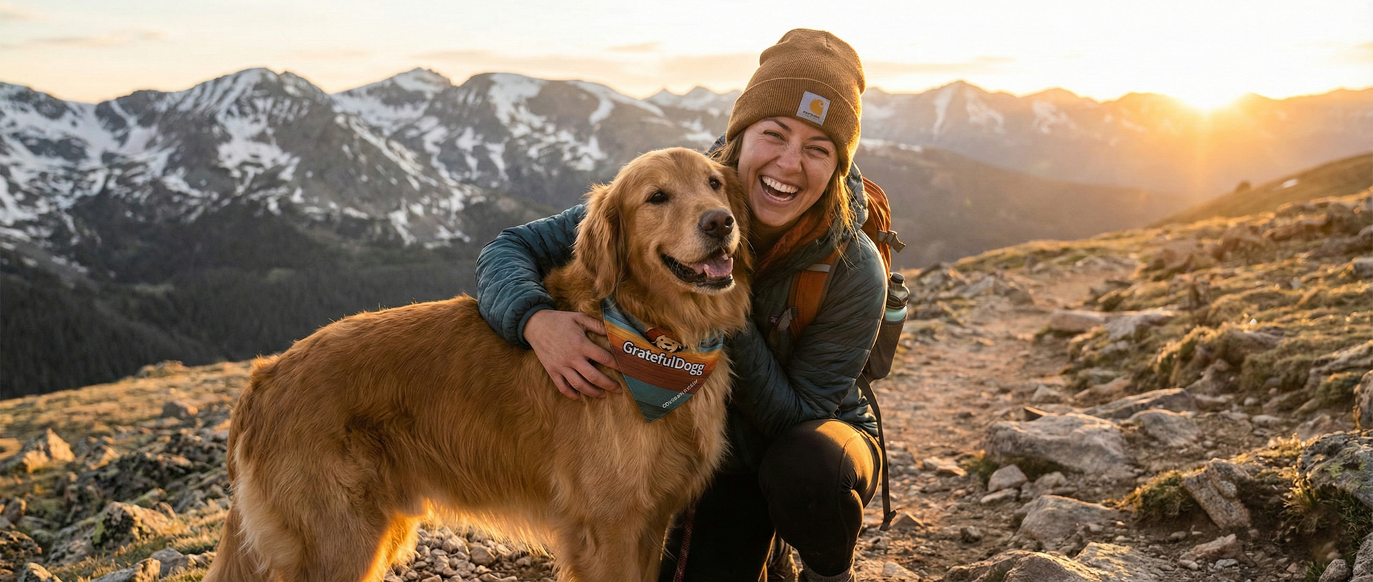 GratefulDogg Kiss-Cut Sticker — Cute Happy Dog Logo "Unleash the Joy"